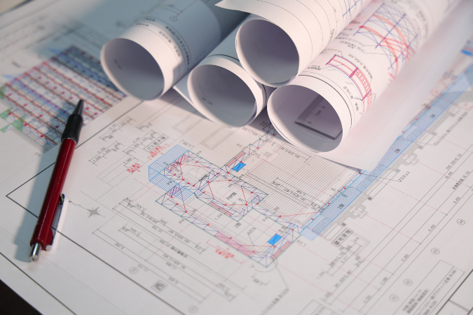 現場の特性やお客様のご要望を反映し、高さや形状に応じた最適な設計を行います。全体の動線計画から細部の納まり、特殊部材の配置に至るまで丁寧に図示し、スムーズで確実な施工につながる図面をご提供いたします。施工現場での作業効率と品質の両立を実現します。